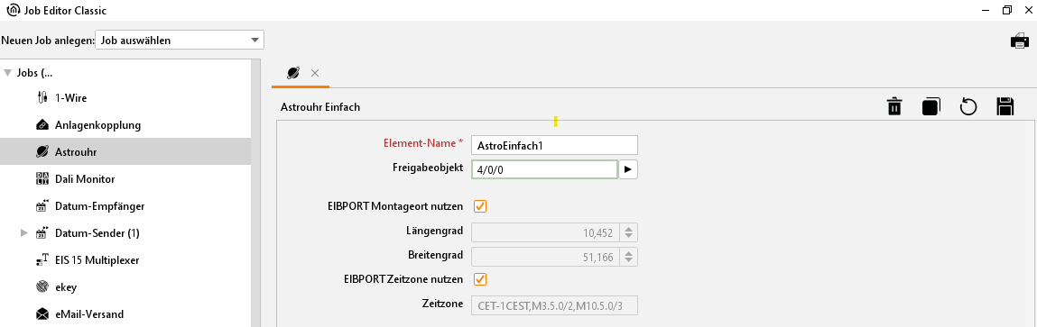 Job Editor Classic – Job Astrouhr anlegen