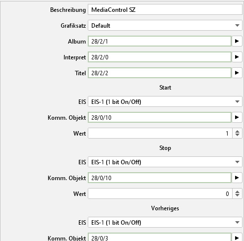 In der rechten Spalte werden die Parameter der Elemente eingetragen. Die Parameter eines Elementes werden angezeigt, sobald es in der linken oder mittleren Spalte angewählt ist. Bei der Parametrierung macht es keinen Unterschied in welcher Spalte das Element markiert ist.
