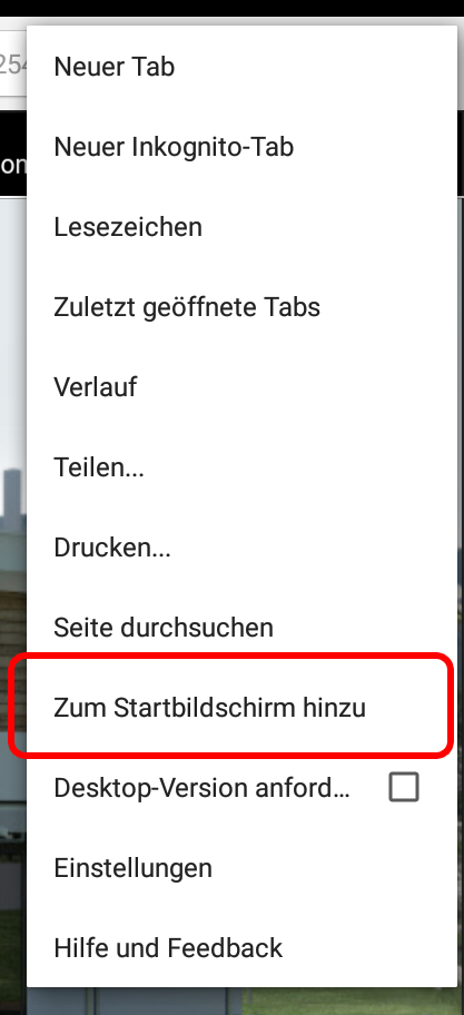 Option "Zum Startbildschirm hinzufügen"