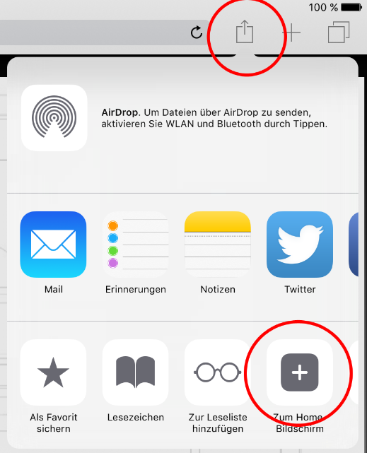 iOS Geräte: Funktion „Zum Home bildschirm hinzufügen“