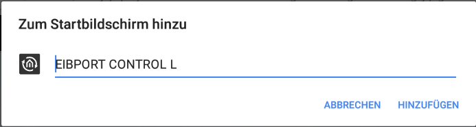 Auf Android Geräten können Sie mit Hilfe der Funktion „Zum Startbildschirm hinzufügen“ im Browser Chrome den Aufruf eines CONTROL L Visualisierungsprojekts mit Hilfe eines Symbols direkt auf den Startbildschirm Ihres Systems verknüpfen.