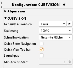 Wenn aktiviert, werden im Fenster der eingebetteten CUBEVISION die Icons der für die „Central-View“ konfigurierten Elemente angezeigt (Siehe CUBEVISION Dokumentation).