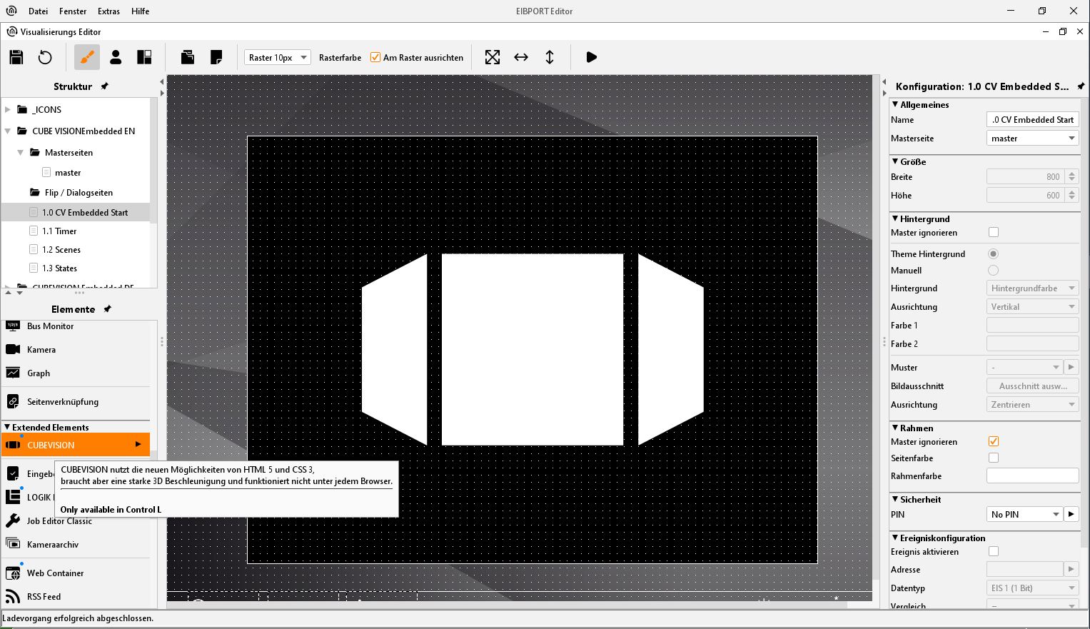 CUBEVISION Visualisierungselement eingebettet in CONTROL L