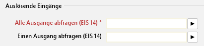 Tragen Sie Unter „Auslösende Eingänge“ für „Alle Ausgänge abfragen“ eine Gruppenadresse, mit der Sie diesen Job starten möchten. Optional können Sie auch eine Gruppenadresse für „Einen Ausgang abfragen“ vergeben.