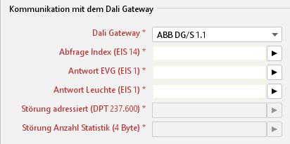 Pflichtfeld. Auswahl des angeschlossenen Dali Gateways.