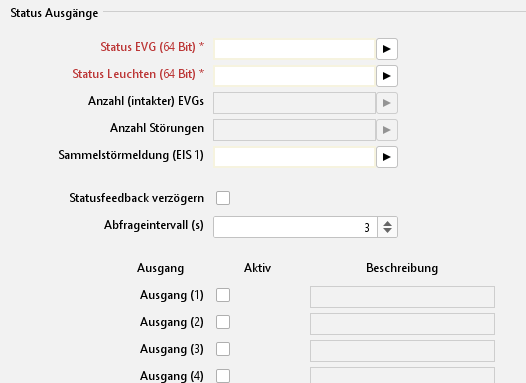 Optional. Es kann eine Beschreibung für den jeweiligen Ausgang eingetragen werden, z.B. Name oder Ort des EVG oder Leuchtmittel welches über diesen Ausgang abgefragt wird.