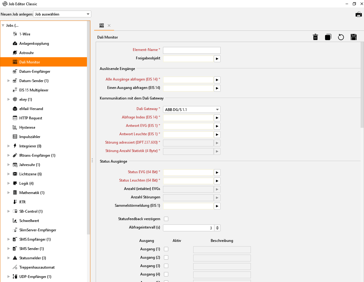 Öffnen Sie einen neuen Dali Monitor Job und vergeben Sie einen eindeutigen Namen z.B. Etage 1 rechts
