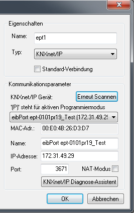 Die ETS verwendet diese Schnittstelle dann automatisch für alle KNXnet/IP Tunneling relevanten Verbindungen.