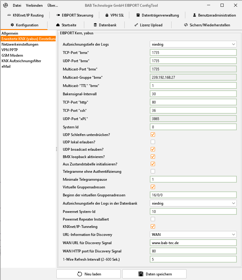 ConfigTool - Konfiguration - Erweiterte (yabus) Einstellungen