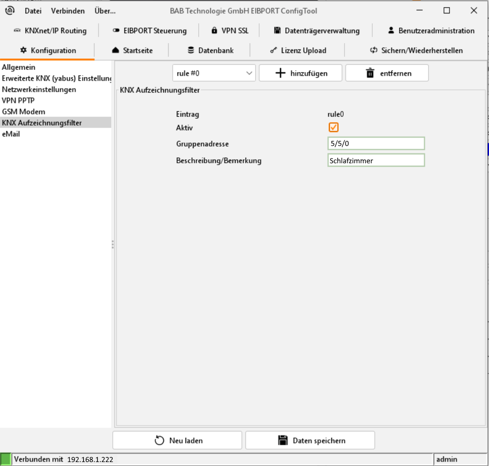 ConfigTool - EIB Aufzeichnungsfilter