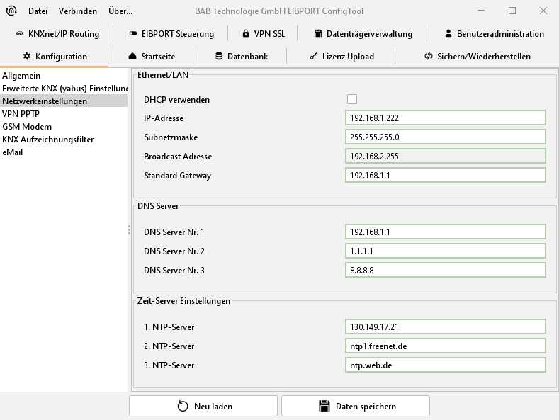 ConfigTool - Konfiguration - Netzwerkeinstellungen