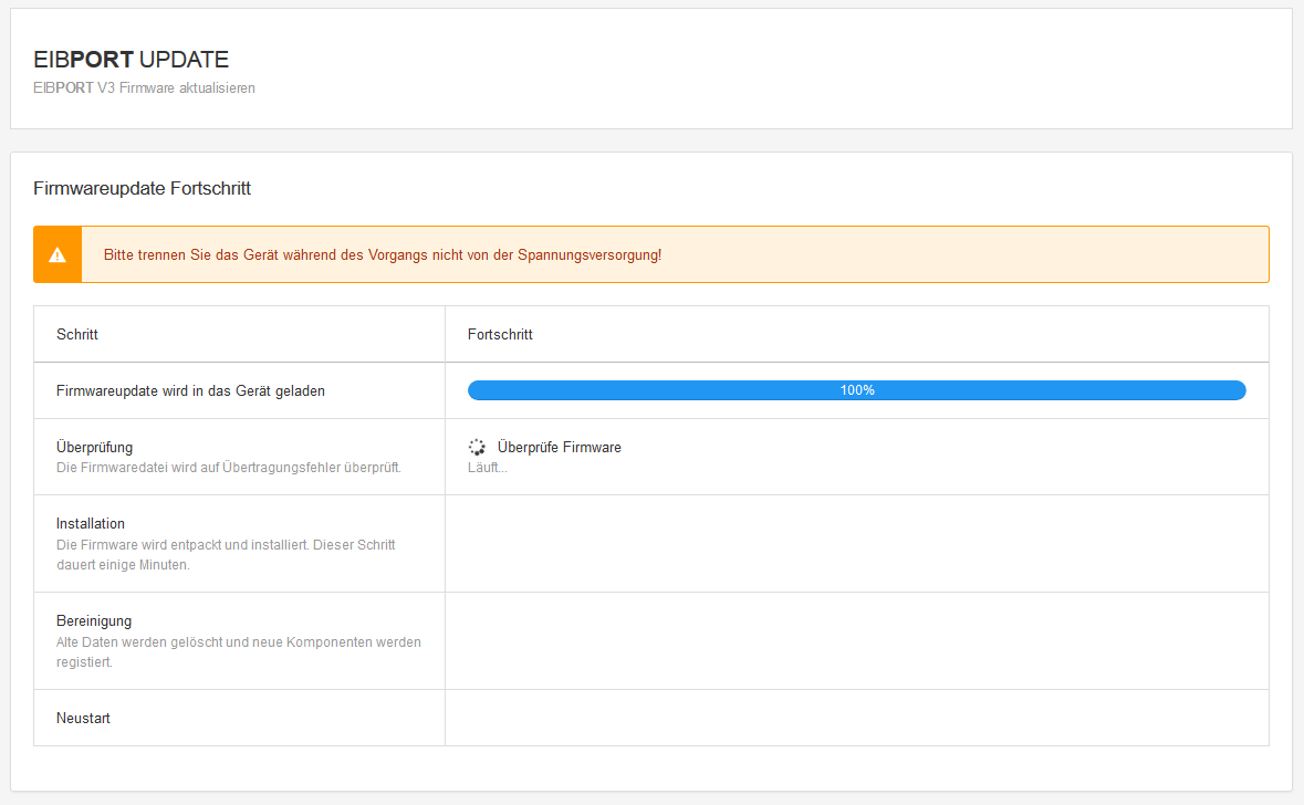 EIBPORT Firmware Update – Fortschrittsanzeige