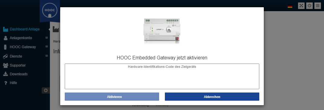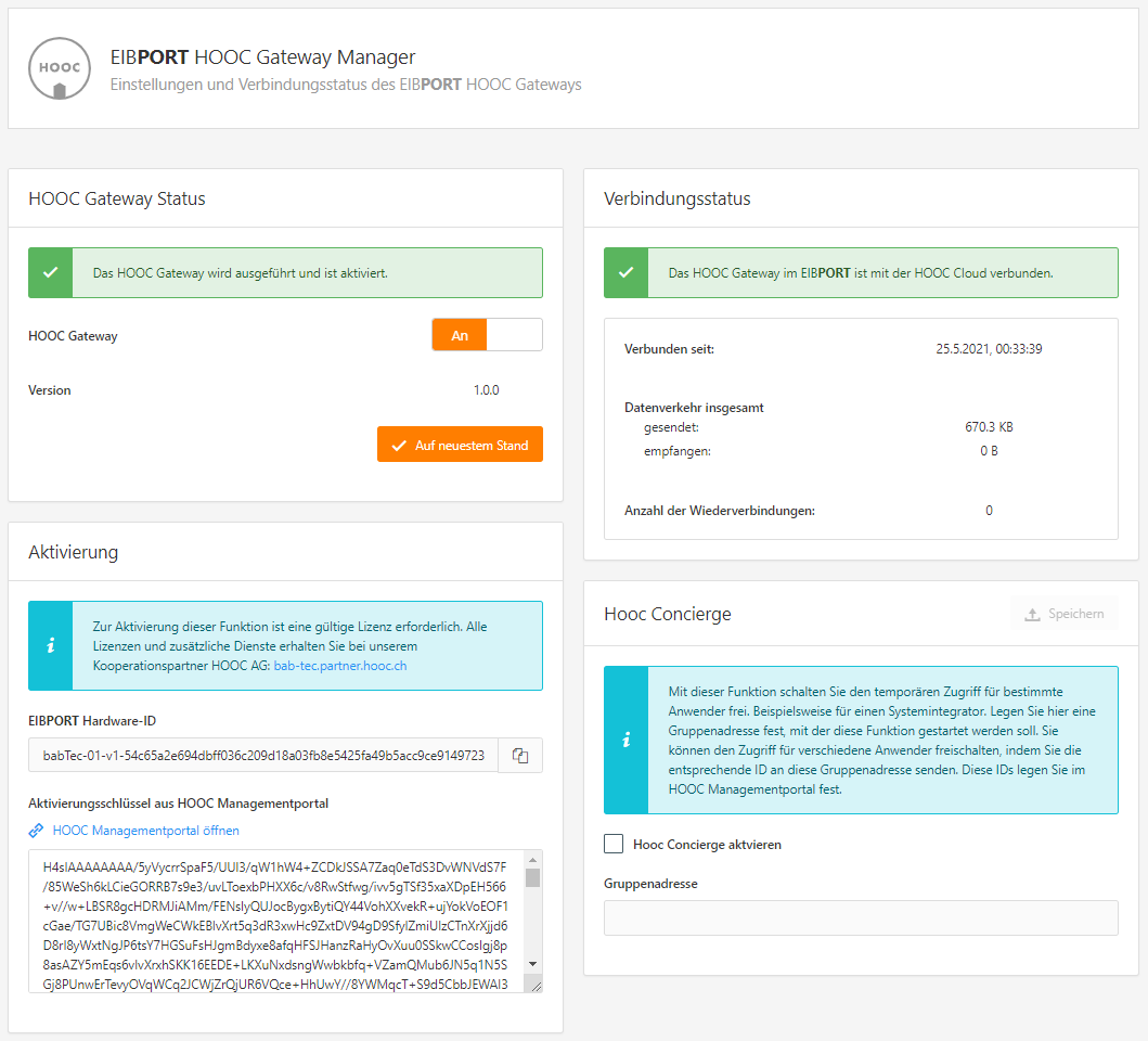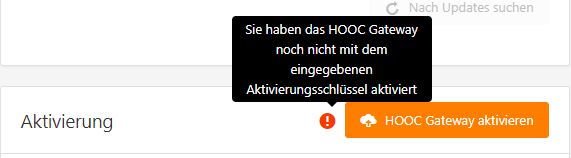 HOOC Gateway Manager - Aktivierungscode eingetragen
