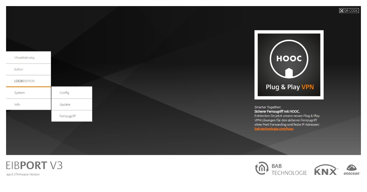 Den HOOC Gateway Manager finden Sie ab der Version 3.9.0 in jedem EIBPORT. Für ältere EIBPORTs der Version 3 (Herstellungsjahr ab August 2011) steht ein kostenloses Firmware Update zur Verfügung.